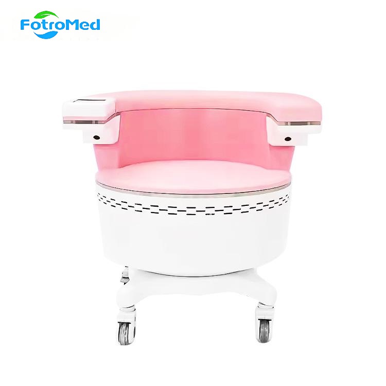 Cadeira EMS, it’s a chair specially designed for private care. It’s the top partner to help women and men pelvic floor rehabilitation. It ’s a non-invasive private beauty instrument that uses the most advanced (Hifem) high intensity focused magnetic vibration technology to directly stimulate motor neurons to control the pelvic floor muscles, so that it can achieve 100% extreme training without pain, just like doing more than 10 ,000 muscle exercises. Therefore, it can be used to deeply train and strengthen the muscles to restore their thickness and elasticity and enhance pelvic floor muscle strength and elasticity, restore pelvic floor function to keep private state young; It ’s suitable for urine leakage or sexual dysfunction caused by weak pelvic floor muscles and it can be used across clothing.